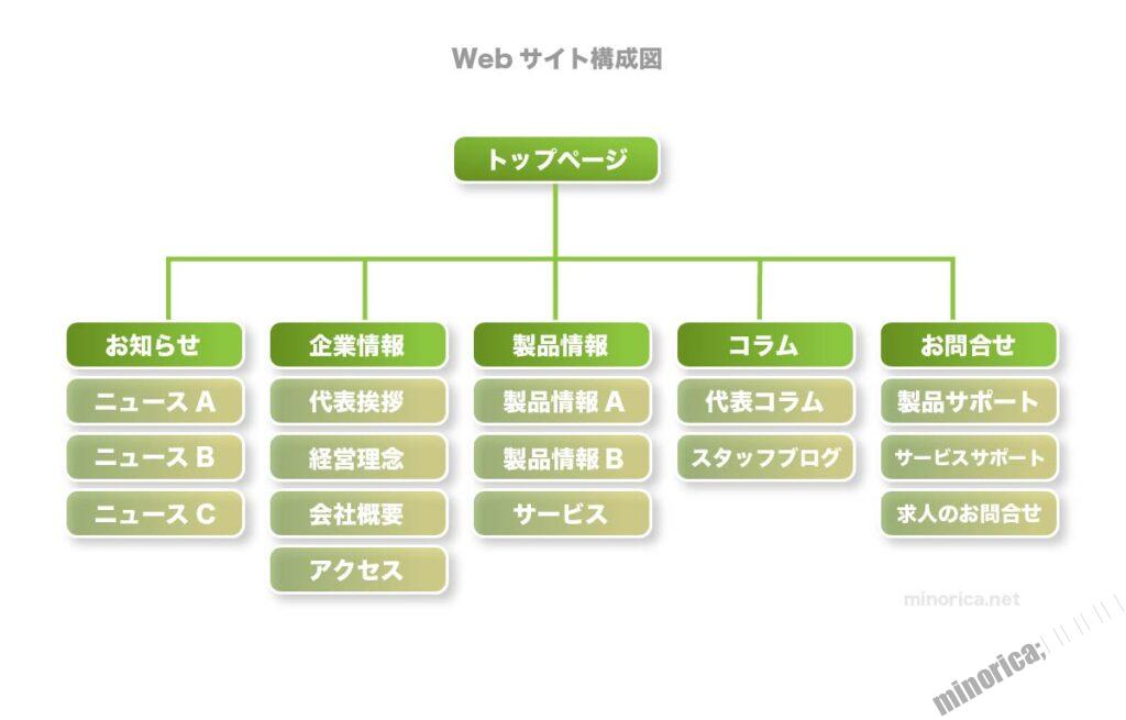 ページの内容や数、ページの関係性を“構成図”として示します。
